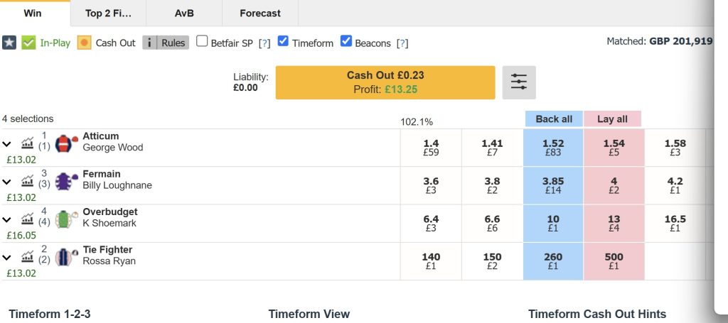 I decided to do my trading with Bet Angel and haven’t looked back. It’s worth every penny. The speed, layout, and reliability are in a different league. I say its worth every penny but it wasn’t even as expensive as I feared either for the “trader” version. So anyone who isn’t using software has no excuses.