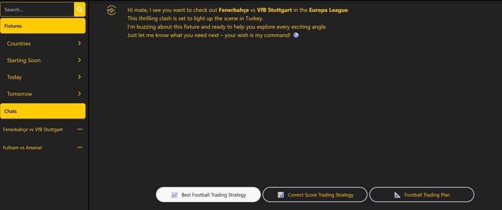 Now, when I say “full analysis,” I don’t mean a generic summary of the league table and last five matches. I mean actual trade-relevant insights. So you get info on style matchups, expected goals patterns, value gaps in the pricing, and most importantly, clear directives on how to trade it.